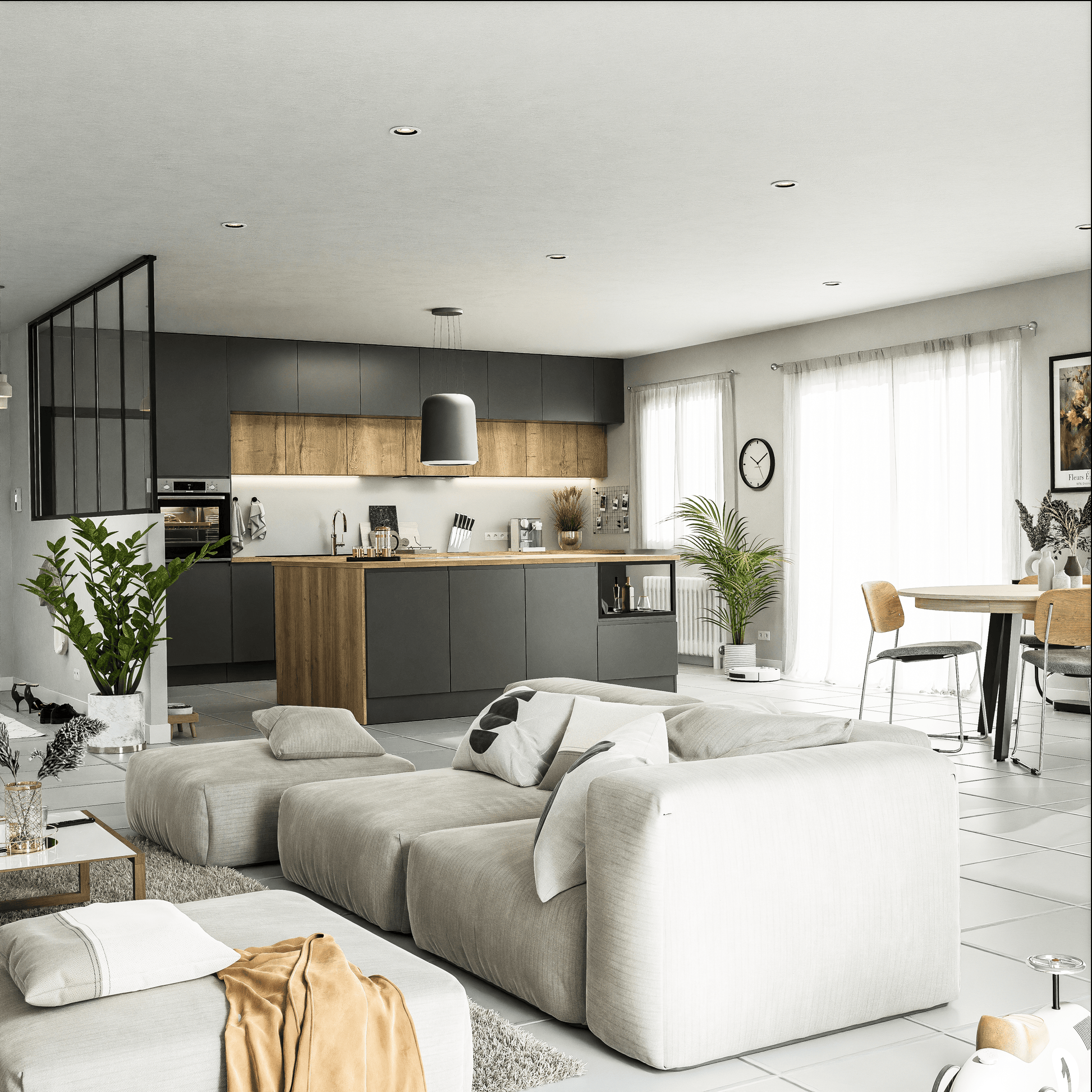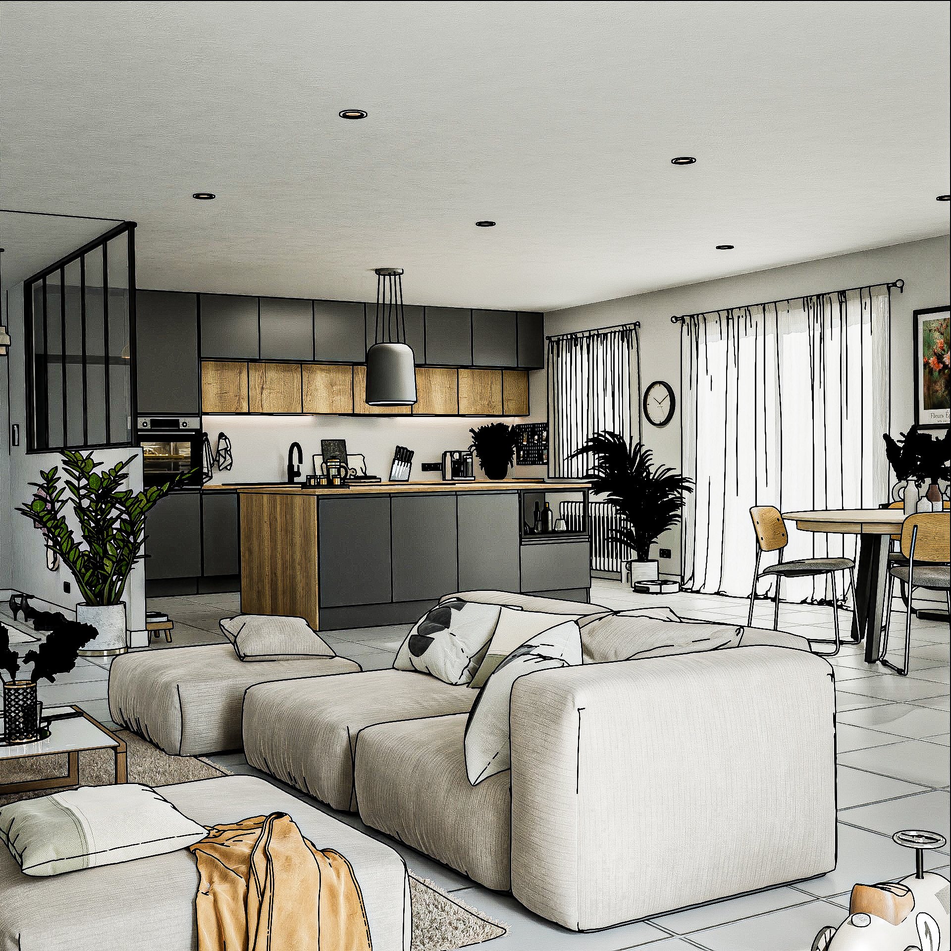 *Seconde proposition déco: Obtenez deux ambiances différentes pour votre projet en gardant la même disposition de mobilier, mais avec une décoration différente.