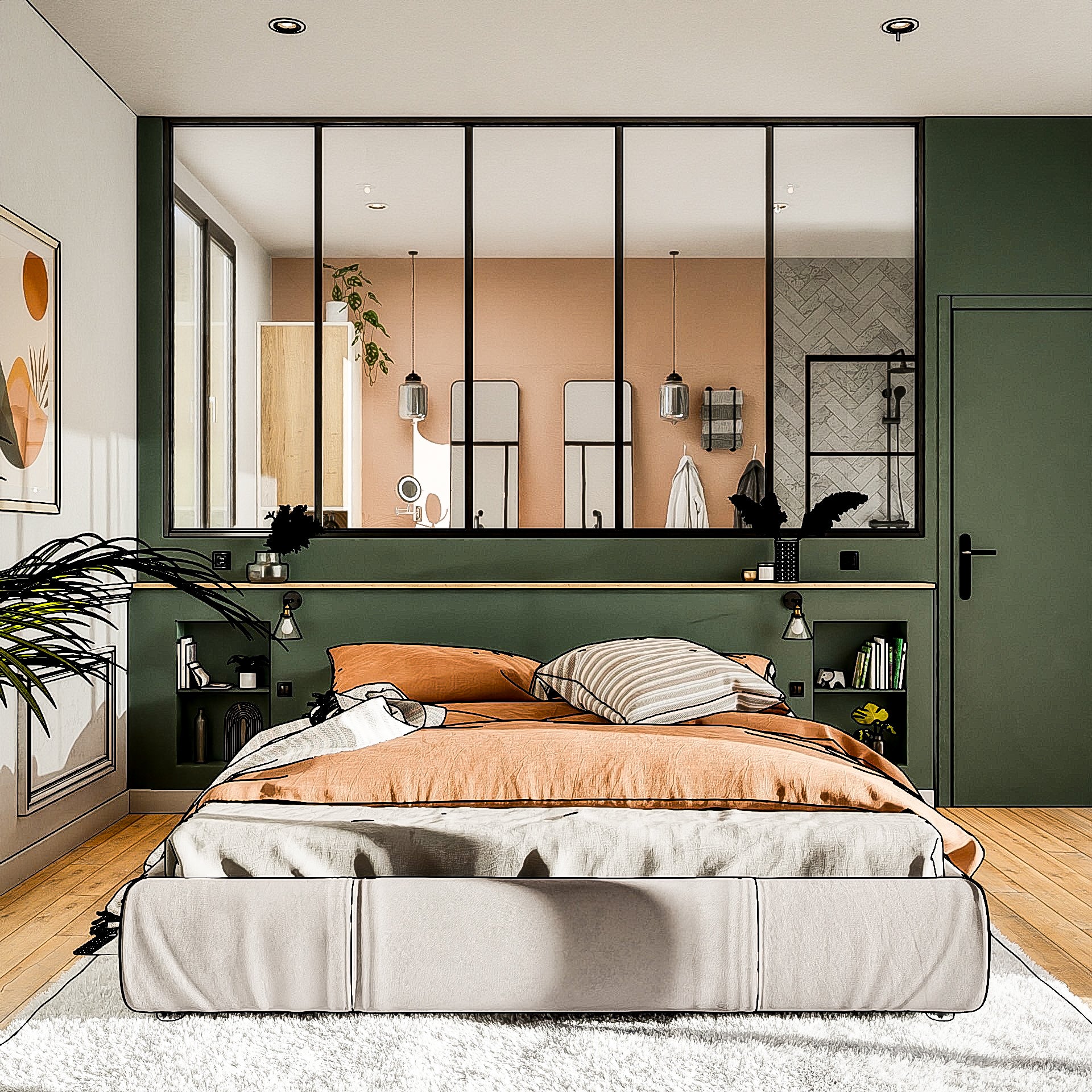 *Seconde proposition déco: Obtenez deux ambiances différentes pour votre projet en gardant la même disposition de mobilier, mais avec une décoration différente.
